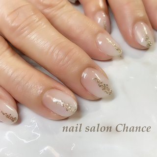 グラデーション白 シャンパンゴールドラメ Plumeria所属 富田 愛のネイルデザイン ミニモ